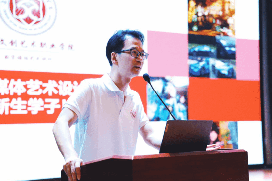 在分享环节,张院长特意讲述了往届优秀学长学姐的成长故事:其中,有通过学院提供的实践平台在行业竞赛中斩获大奖的数字媒体艺术设计专业学生,有大二、大三的学长学姐凭借学院校企合作的机会,进入知名公司成为骨干成员……一个个鲜活的案例,不仅展现了学院的育人成果,更让新生们看到了在新媒体领域的无限可能。“大学三年,是积累知识、提升能力的黄金时期,更是找准定位、实现突破的关键阶段。”张院长寄语新生,希望大家能珍惜在校时光,既要脚踏实地学好专业知识,也要敢于突破创新、积极参与实践,在新媒体艺术的浪潮中找准自己的赛道,用专业能力书写属于自己的青春答卷。
